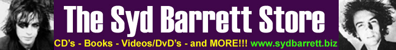 Welcome to the Syd Barrett Store and the Pink Floyd Collector, the one stop place for all of your Syd Barrett and Pink Floyd needs. Please e-mail me with any requests. webman@sydbarrett.net |